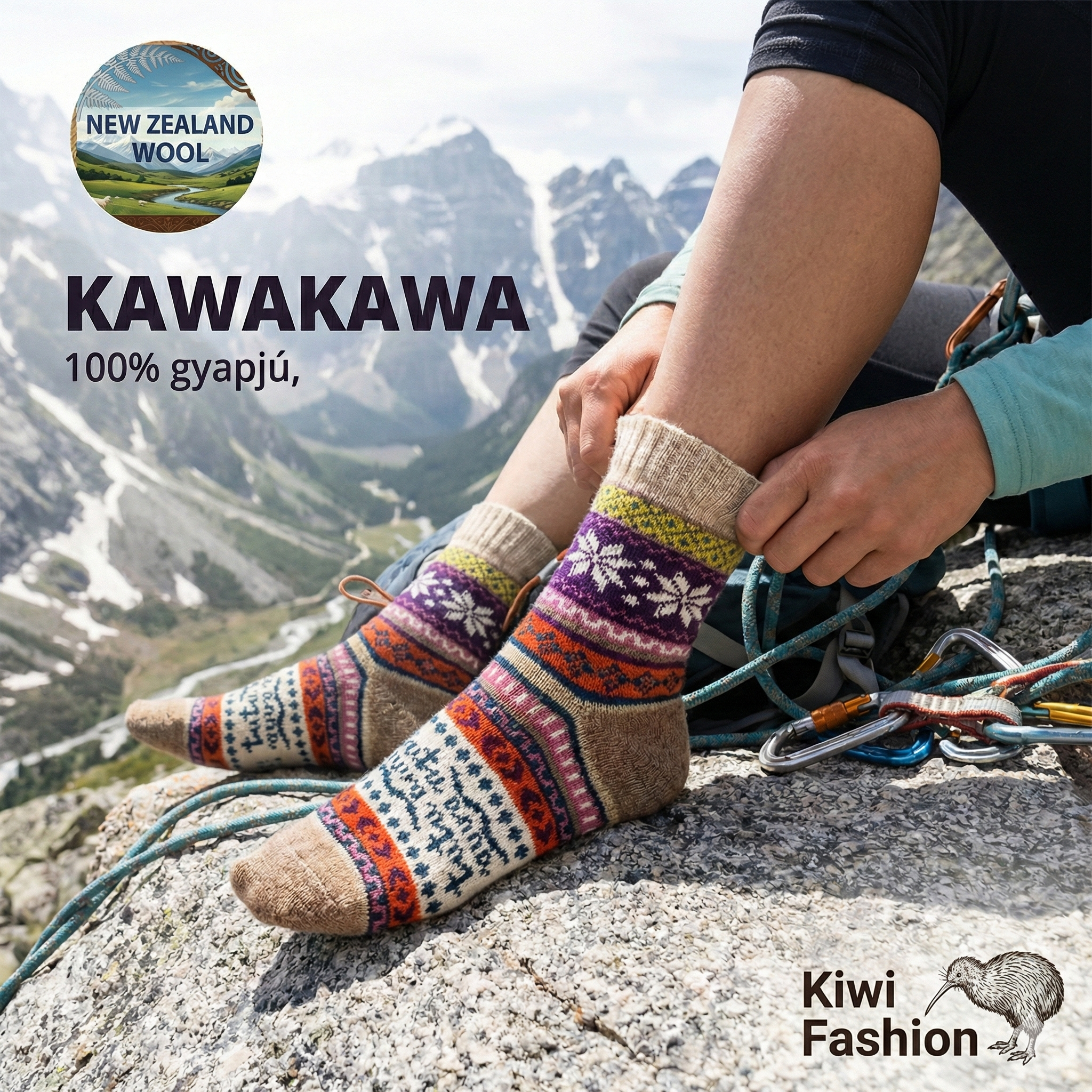 Ez a prémium minőségű, 100% tiszta birkagyapjúból készült zokni nem csupán egy ruhadarab, hanem egy darabka Új-Zéland életérzéséből. A vibráló színek és a hagyományos maori, valamint természetközeli motívumok találkozása teszi ezt a kiegészítőt igazán különlegessé.